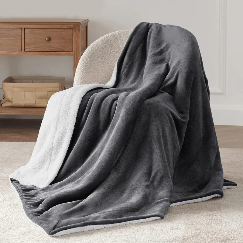 Double-Layer Thick Lamb Fleece Blanket – Ultra-Soft Warm Solid Color Throw for Bed & Sofa