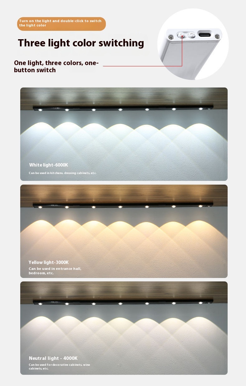 LED Wireless Self-Adhesive Cabinet Light โ Rechargeable Motion Sensor Strip with 3 Light Modes for Shoe Cabinets, Closets & Drawers 2/4 Lights