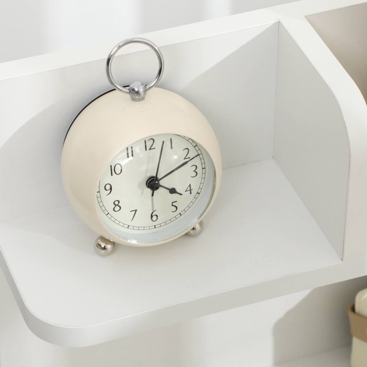 Display – Multiple shelves of varying sizes perfect for alarm clocks, books, plants, and decorative items
