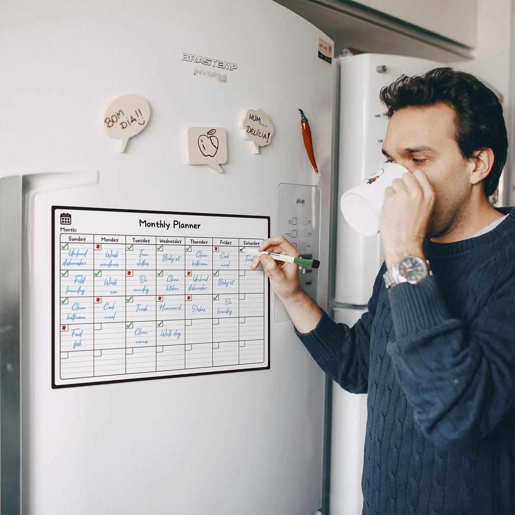 Crafted with a premium glossy finish, the board provides a smooth writing surface and easy wipe-clean functionality, ensuring it can be reused month after month without ghosting or stains. Its magnetic backing allows you to securely attach it to any magnetically receptive surface, such as fridges or filing cabinets, so your reminders and plans are always visible.