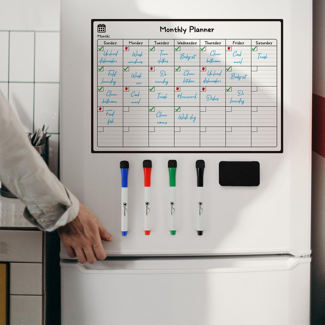 Vinsani Monthly Planner Whiteboard with 4 Markers & Eraser – Magnetic Monthly Organiser 42.8×29.7cm